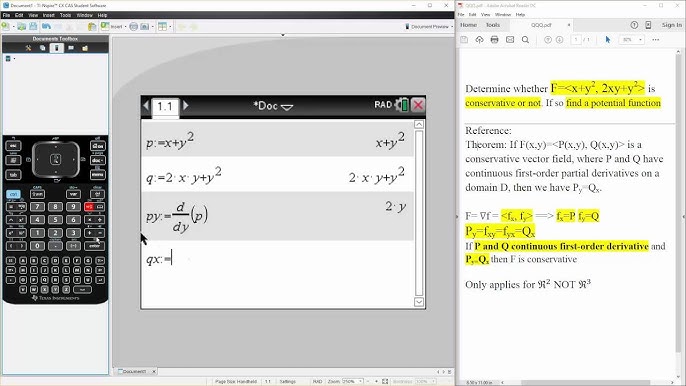Calc 3 Conservative Vector Field Ti Nspire Cx Cas Pta Youtube